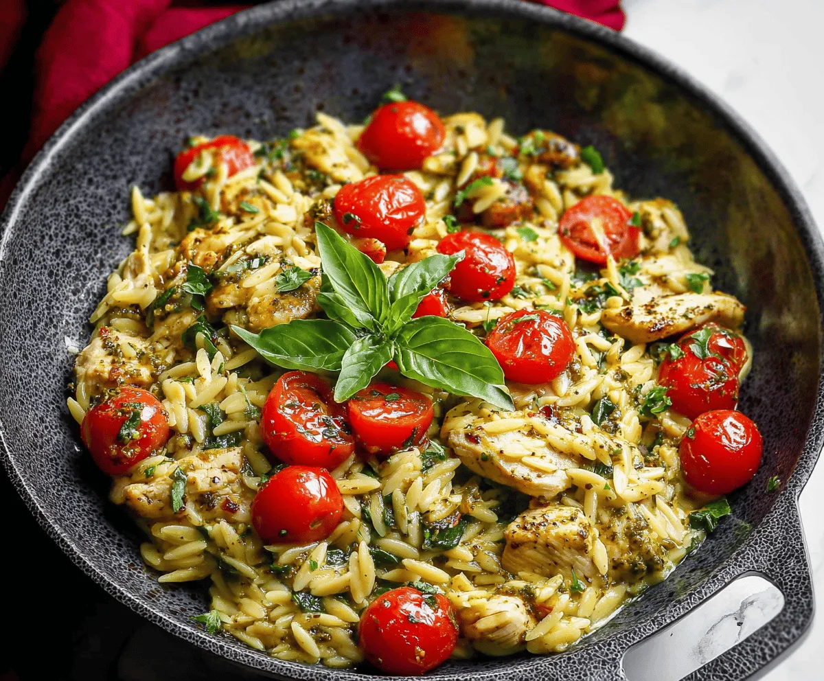 Creamy Chicken Orzo with Spinach, Cherry Tomatoes, and Basil Pesto is a simple, comforting meal that brings together tender chicken, tiny pasta pearls, fresh spinach, and juicy cherry tomatoes all coated in a silky, creamy sauce. The basil pesto adds a bright, herby touch that really makes the flavors pop. It’s a dish that feels both fresh and comforting at the same time.