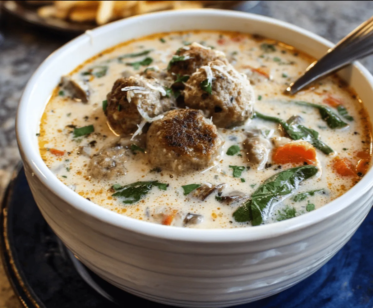 Creamy Italian Meatball Soup is a cozy and comforting bowl full of tender meatballs, gentle creaminess, and hearty vegetables. The rich broth combines flavors of garlic, Italian herbs, and a touch of Parmesan, making every spoonful warm and satisfying. It’s the kind of soup that feels like a big, tasty hug on a chilly day.