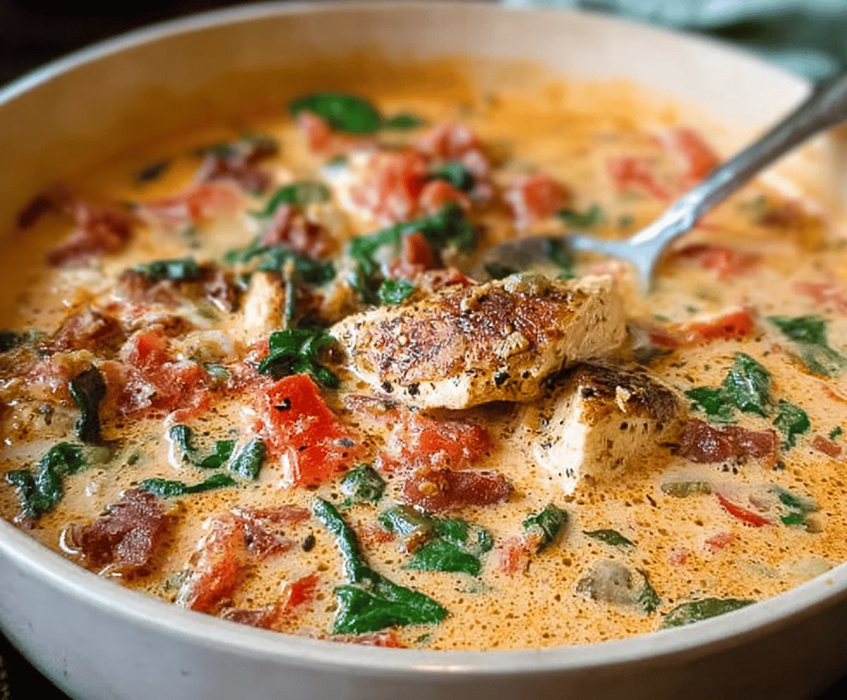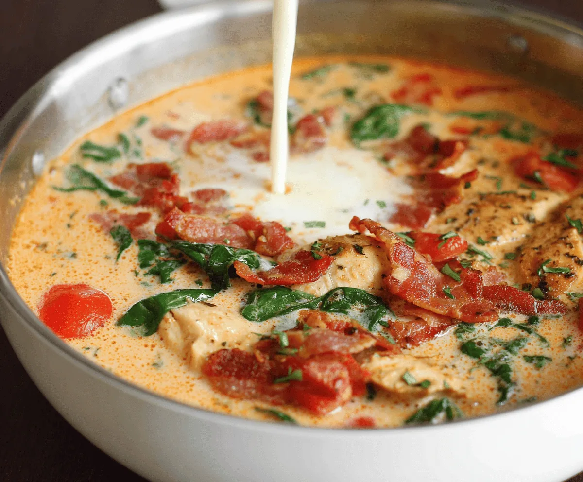 Creamy Tomato Chicken Soup With Bacon And Spinach