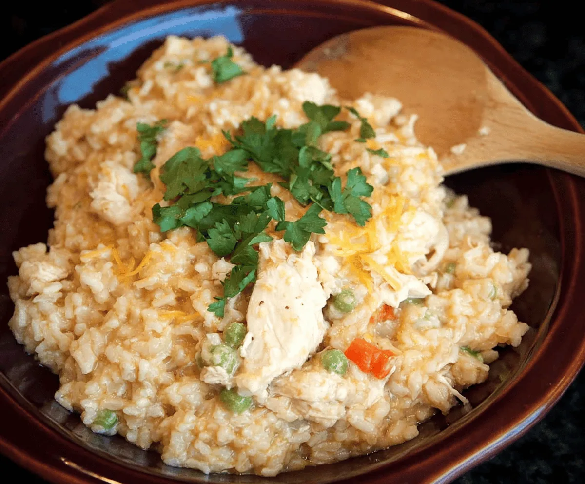I love using my slow cooker for this dish because it means I can set it up in the morning and come home to a delicious, home-cooked meal ready to eat. The chicken turns out juicy and full of flavor, while the rice soaks up all the good juices, making every bite satisfying. I often like to add a little bit of frozen veggies in the last hour to make it a one-pot meal that’s both easy and filling.
