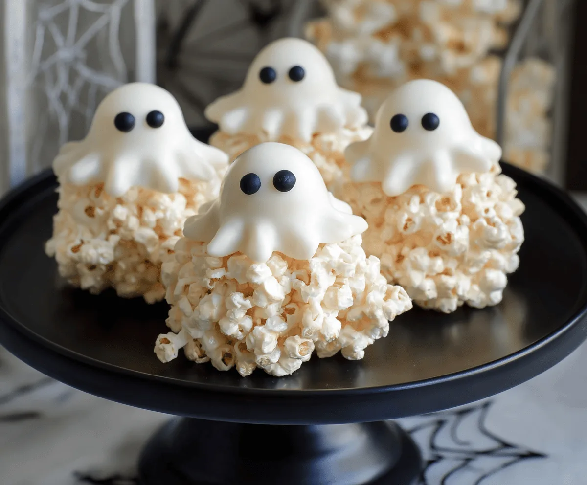 This recipe takes about 15 minutes to prepare and assemble the popcorn balls and ghosts, plus around 15 minutes for cooling and setting. It’s a quick and fun treat you can whip up easily, perfect for Halloween parties or festive snacks.