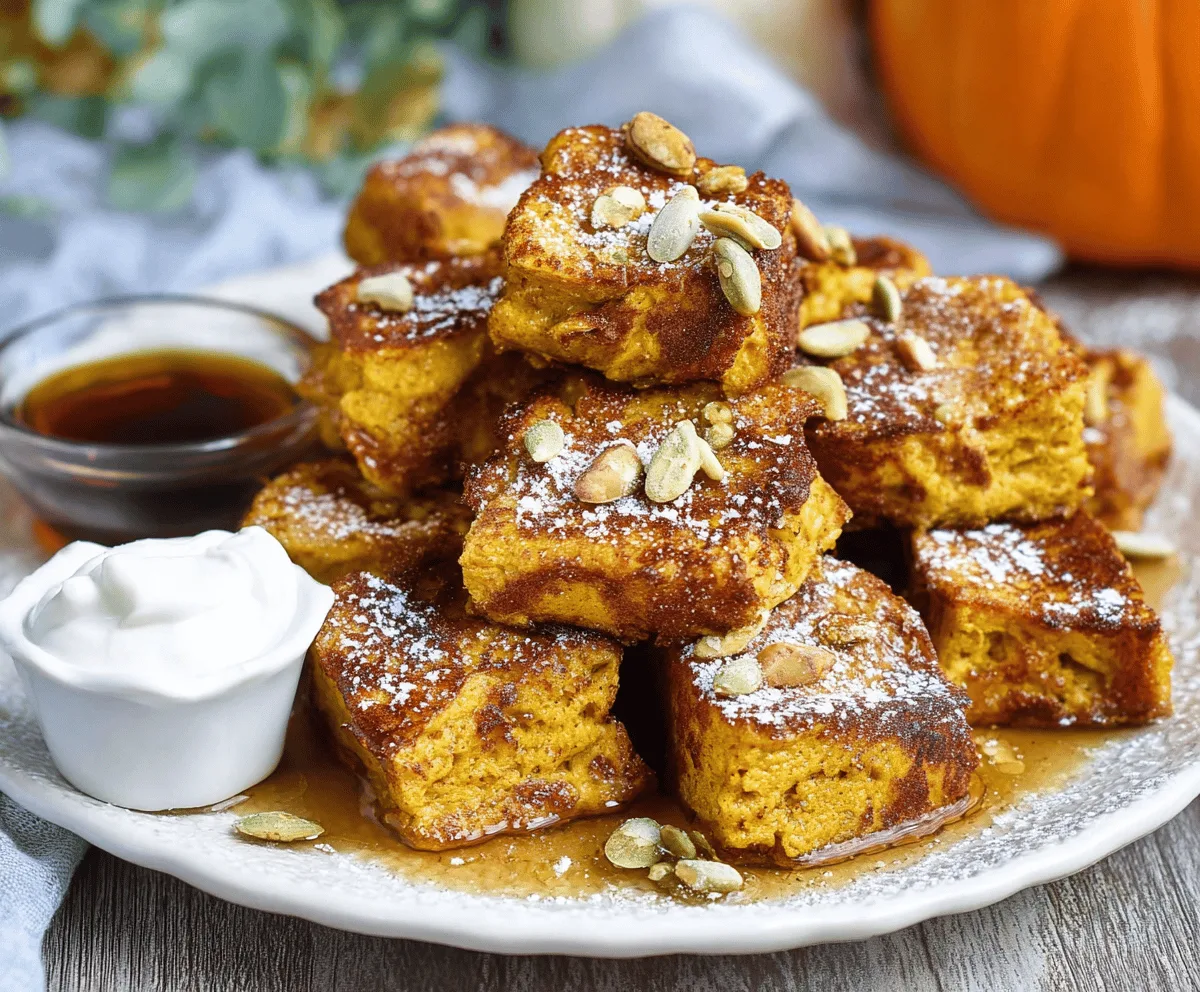 Enjoy your cozy, bite-sized pumpkin French toast treats perfect for a tasty breakfast or brunch!