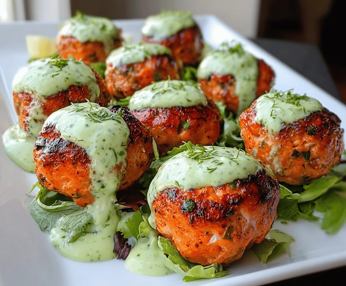 Arrange the salmon balls on a serving dish over a bed of leafy greens if you like. Drizzle the creamy avocado sauce over the balls, and sprinkle some fresh herbs like parsley or dill for a little extra color and flavor. Serve immediately, either as a tasty appetizer or alongside your favorite light salad or steamed veggies.