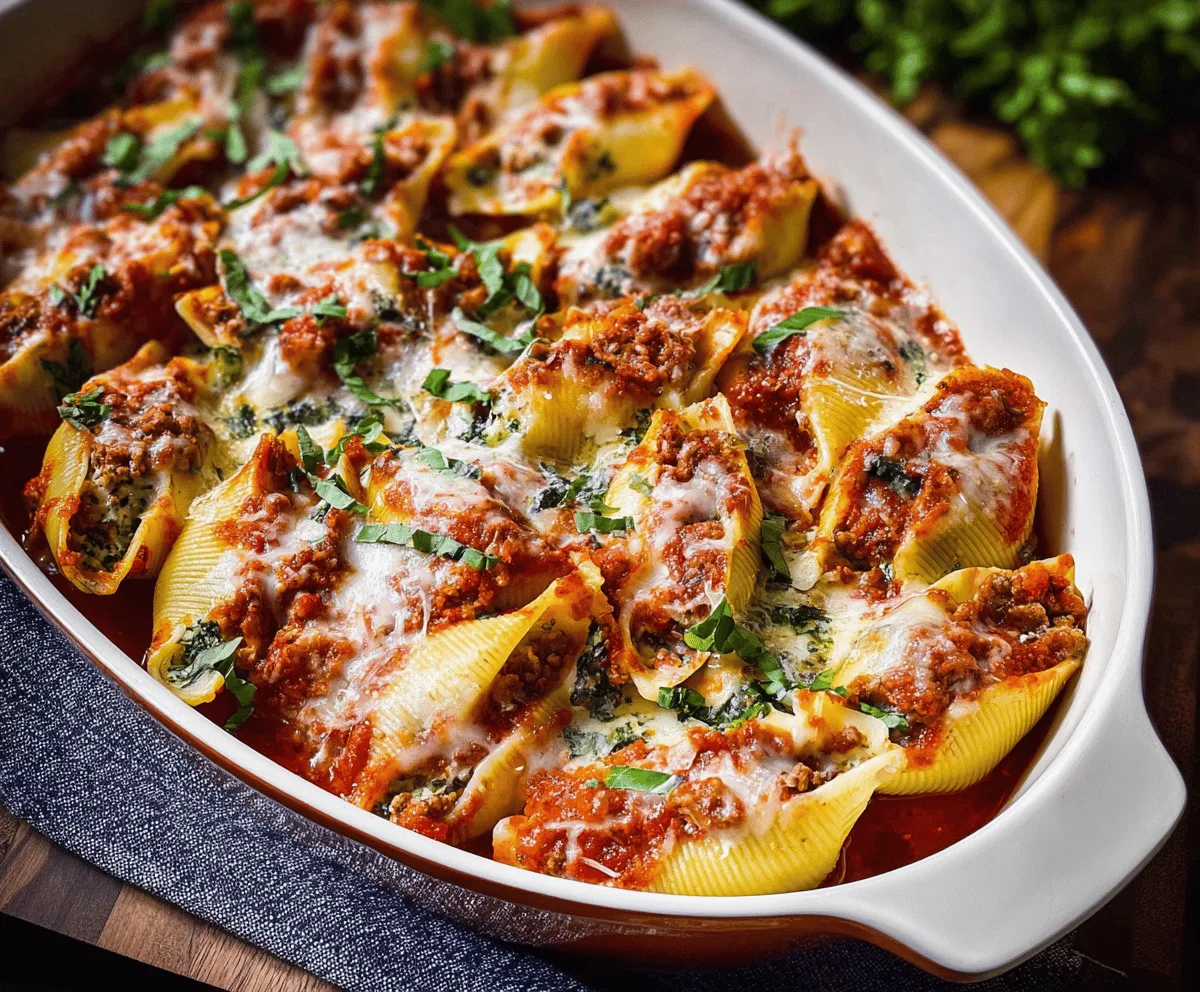 Preheat your oven to 375°F (190°C). Spread a thin layer of marinara sauce on the bottom of a 9×13 inch baking dish. Carefully stuff each shell with the meat and cheese filling and place them in a single layer in the dish.