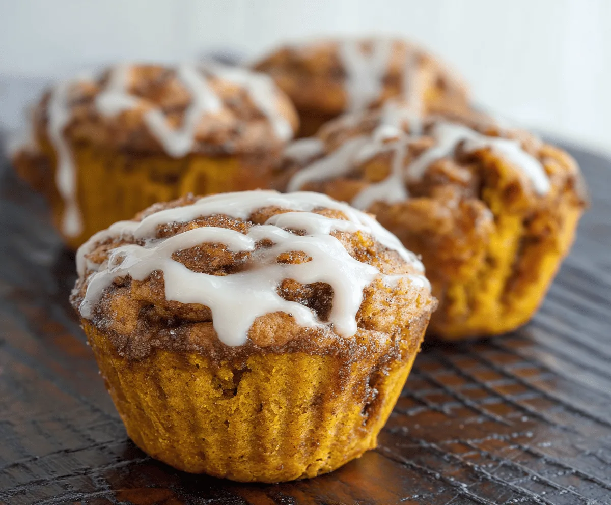 Drizzle the glaze over the warm muffins. Serve them fresh and enjoy the lovely pumpkin and cinnamon flavors all in one bite!