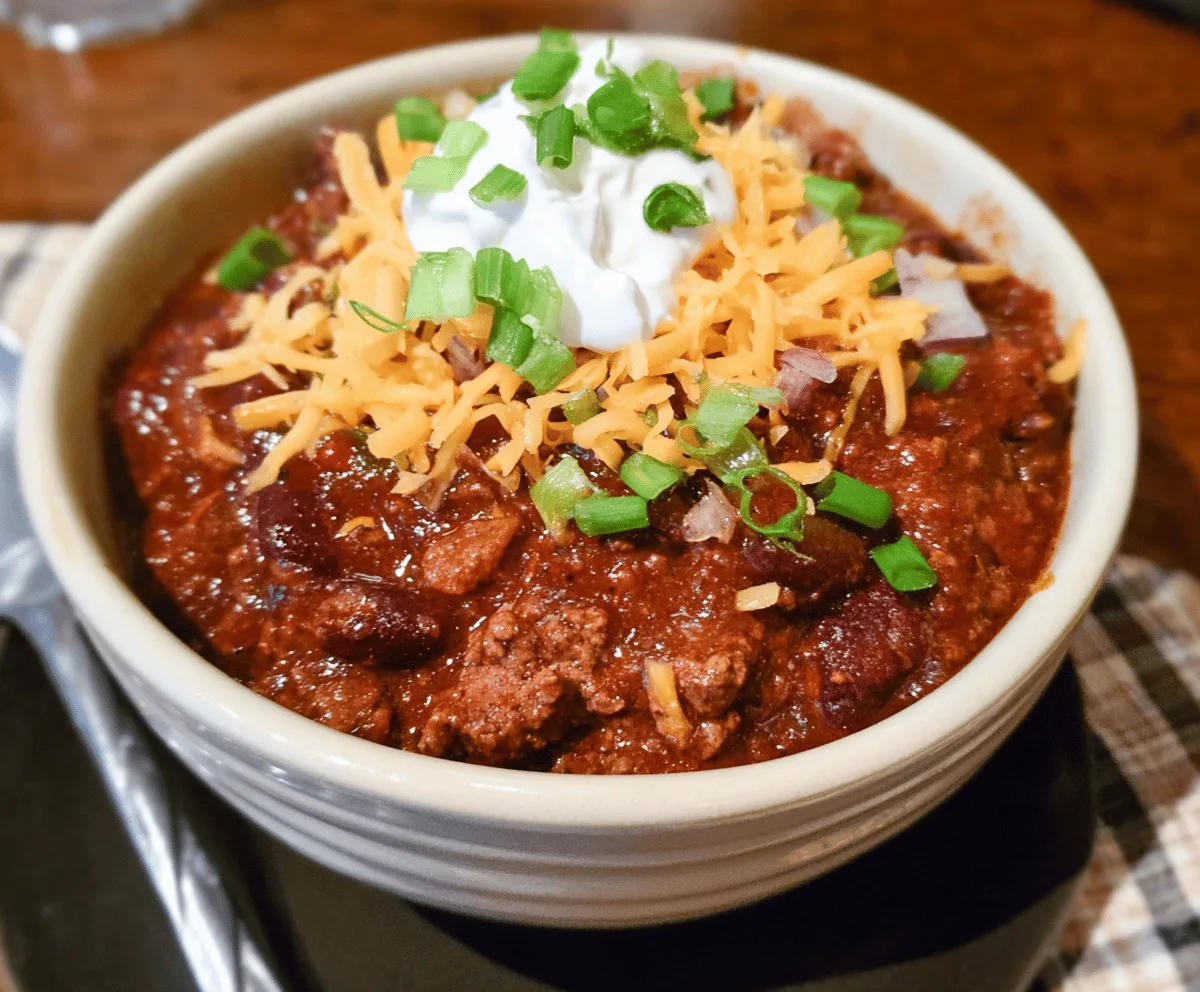 Check the chili for seasoning. Add more salt, pepper, or chili powder if you’d like it spicier or more flavorful. Serve hot, topped with shredded cheddar cheese, a dollop of sour cream, chopped green onions, and diced raw onions. For a true Texas Roadhouse feel, serve it with cornbread or tortilla chips on the side.