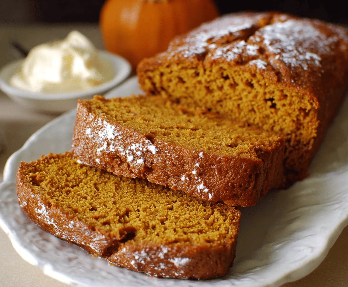 Let the pumpkin bread cool in the pan for about 10 minutes, then gently remove it and transfer to a wire rack to cool completely. Once cooled, you can dust the top with powdered sugar if you like. Slice and enjoy plain or with a bit of whipped cream or cream cheese spread for extra yum!