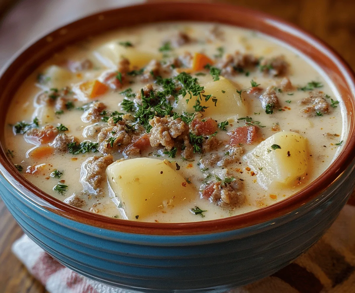 Crockpot Creamy Potato & Hamburger Soup is a hearty and comforting dish that brings together tender potatoes and seasoned ground beef in a creamy, flavorful broth. It’s like a warm hug on a cold day, with soft potatoes, savory meat, and a smooth texture that makes every spoonful feel satisfying.