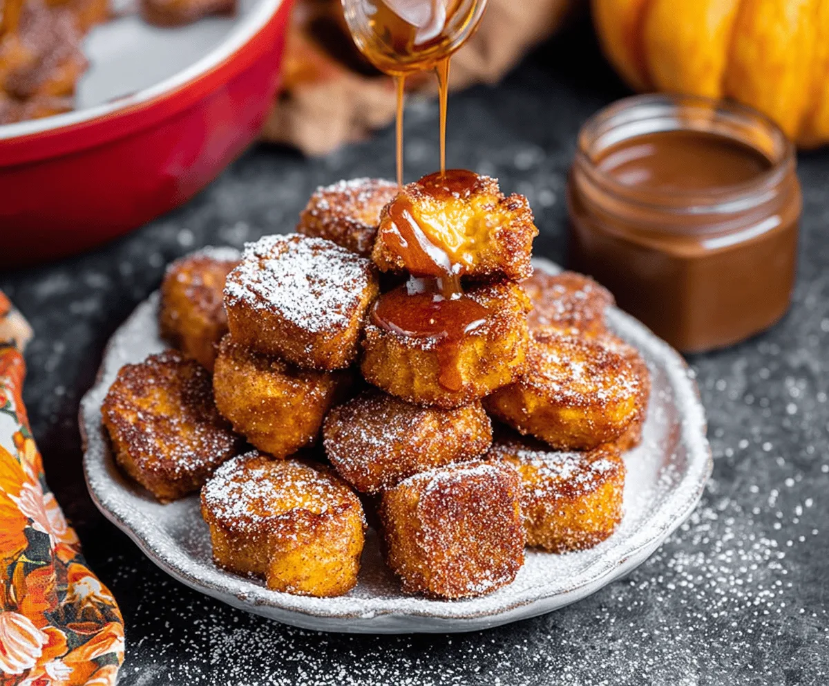 Enjoy your cozy, bite-sized pumpkin French toast treats perfect for a tasty breakfast or brunch!